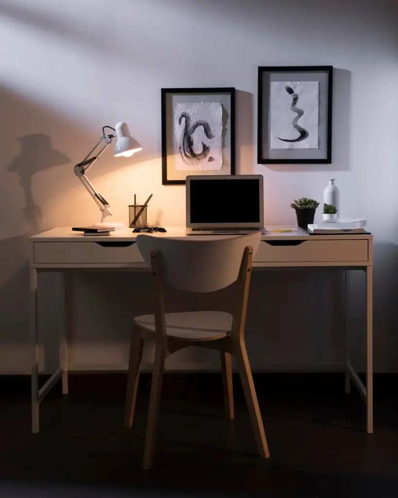 Plane Basis-, Arbeits- und Akzentlicht. Eine indirekte Grundbeleuchtung entkrampft, eine blendfreie Schreibtischlampe fokussiert, ein kleines Warmlicht markiert den Abschluss. Nutze einen Dimmer, um Übergänge einzuläuten. Morgens klarer, abends sanfter. Richte den Lichtkegel auf Werkzeug, nicht ins Gesicht. So entwickelt der Körper verlässliche Signale für Start, Flow und Stopp, während Augen ermüdungsfrei lesen und Denken körperlich angenehm bleibt.